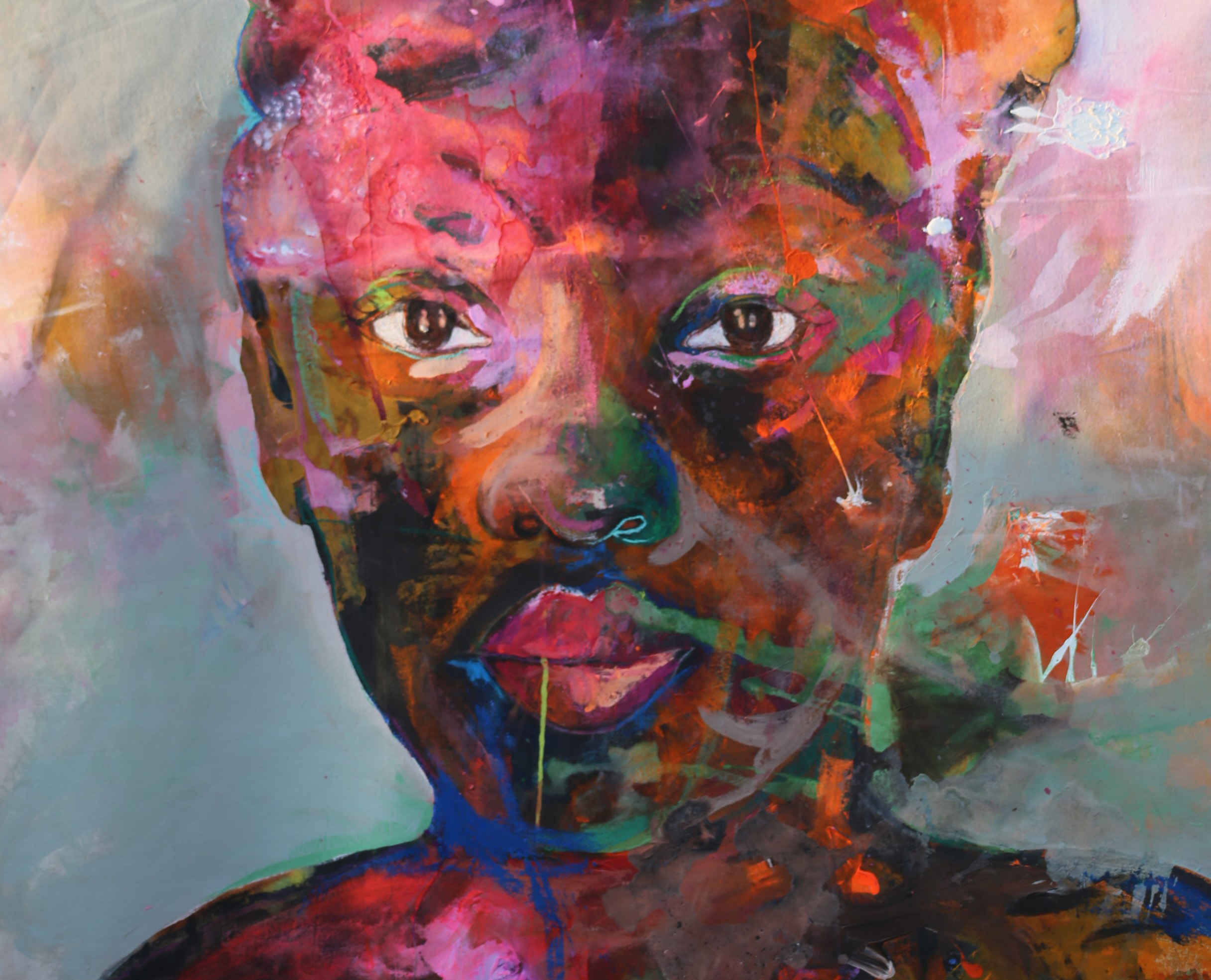 Originating from Ghana, Emmanuel commenced painting and drawing to deal with depression and experiences on settling in Australia as a teenager. His talent was recognised and encouraged by his high school art teacher. It was at a school career expo that Emmanuel was introduced to artist Abdul Abdullah, who later become one of his mentors. This support gave Emmanuel the courage to pursue a career as an artist.