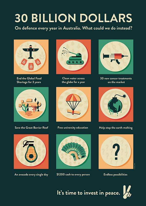 a rule about ‘no doves, no flowers, no tanks’ as we wanted to get people thinking in new ways. Thinking about the hard work of justice, of making sure that people have good governance and safe places to live. And it’s not just preventing war – it’s far more active and engaged than that.”