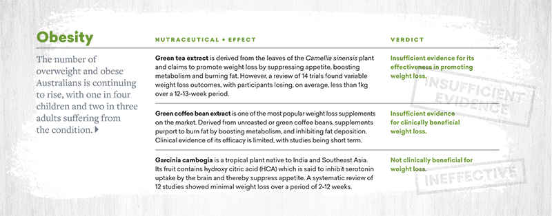 Marketing nutraceuticals is one thing but delivering on their promises is another. In a recent UniSA review of the efficacy of some of the most commonly available nutraceuticals to manage chronic diseases, such as obesity, hyperglycaemia (a precursor for diabetes), high blood pressure, high cholesterol and inflammation, only a handful showed reliable health benefits.