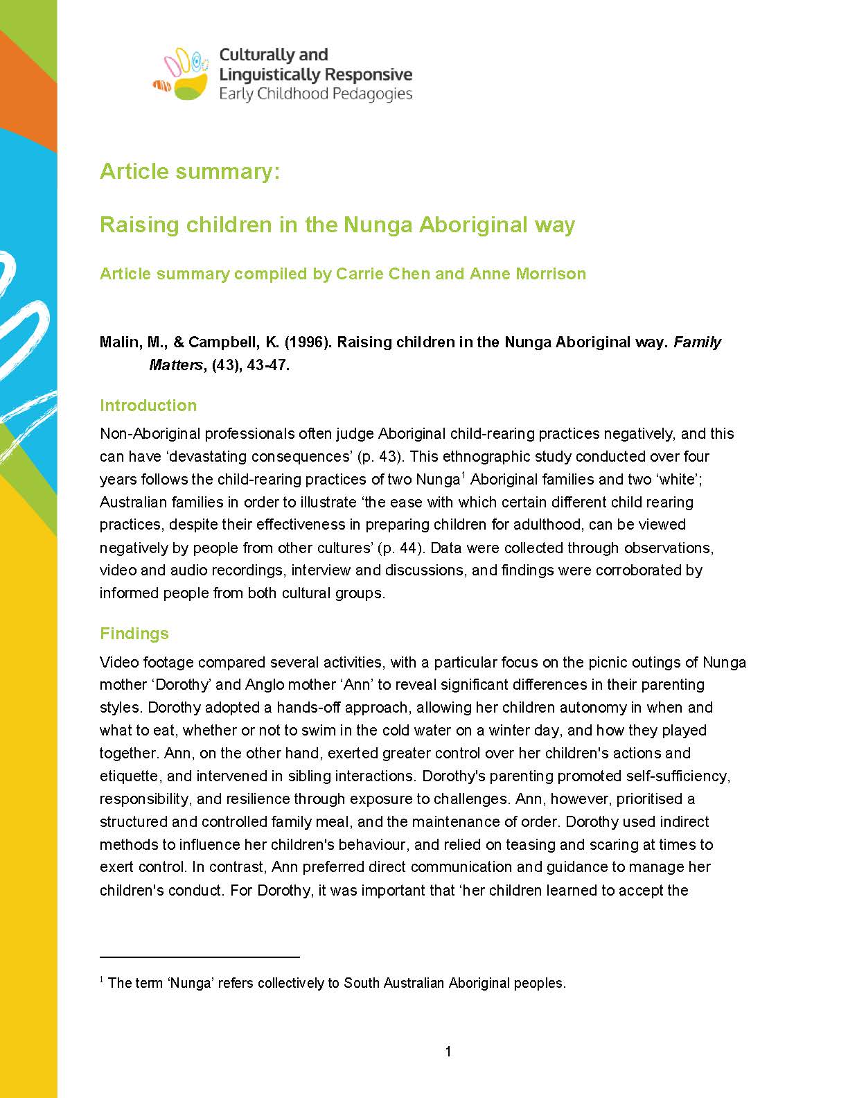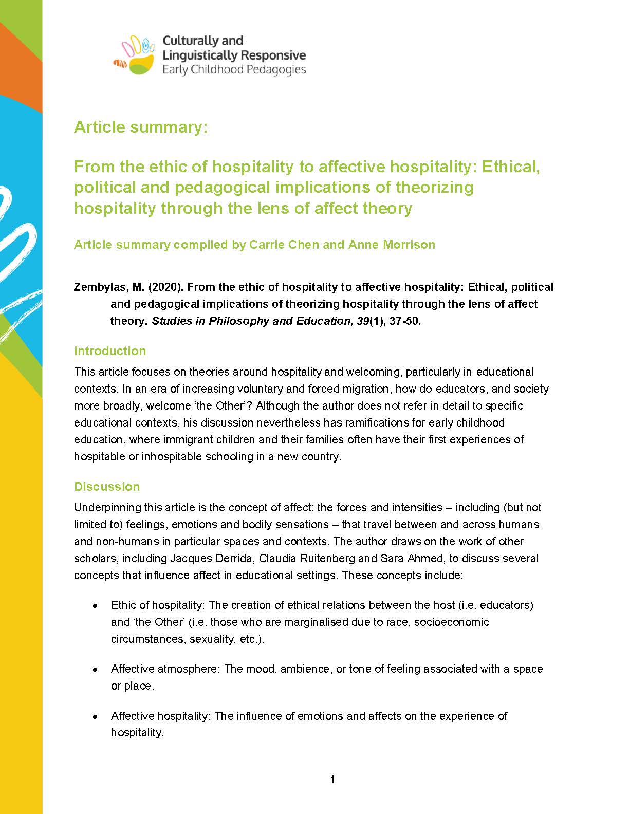 If you are keen to read literature on Culturally and Linguistically Responsive Pedagogies in Early Childhood Education, but are short of time, these article summarise provide key relevant literature.