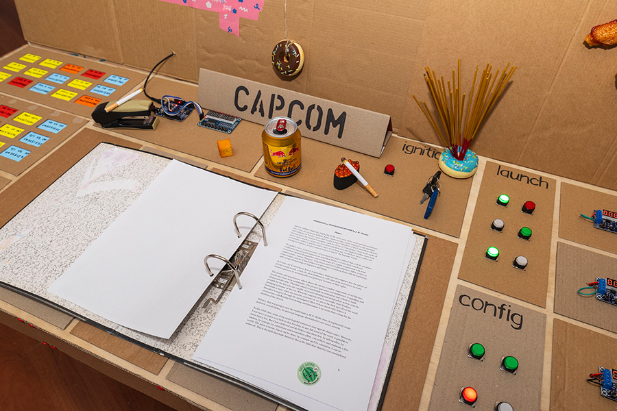 In this ambitious new work, Healy and Cordeiro premiere Psychopomp, a cacophonous and vibrant moving image work. Exploring the porous relationship between science and mysticism, the pair turn their attention to rocket technology and its link to spirituality.