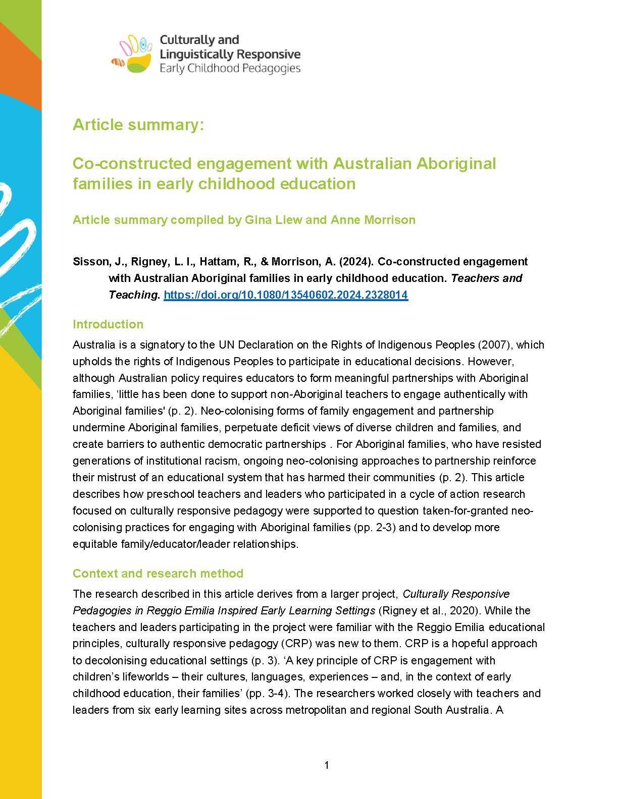 If you are keen to read literature on Culturally and Linguistically Responsive Pedagogies in Early Childhood Education, but are short of time, these article summarise provide key relevant literature.