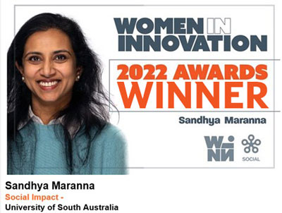 Sandy Maranna – a senior clinical specialist sonographer at SA Health and a medical sonography academic with UniSA’s Allied Health and Human Performance Unit – won Winnovation’s ‘Social Impact’ category for her innovative work in women's health. An expert in diagnostic sonography and online pedagogy, her leadership, clinical expertise, and dedication to high-quality student learning and patient care are changing the lives of women in Australia and around the world.